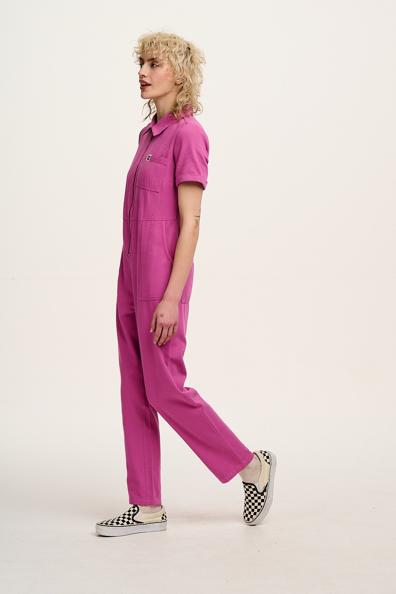 Rex - Short Sleeve Cotton Jumpsuit in Dahlia Pink (POS)